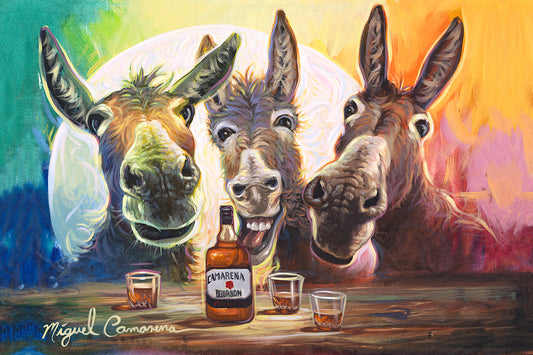 Moonlight Whiskey Donkeys Print on Canvas by Miguel Camarena