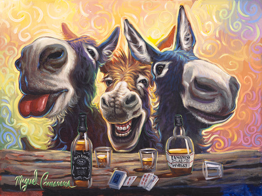 Whiskey Donkeys Card Game Print on Canvas by Miguel Camarena