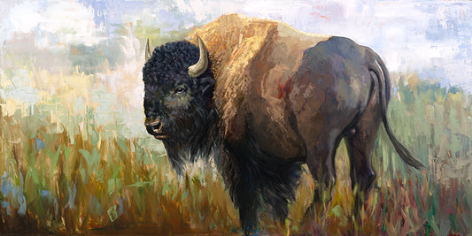 Experience the Majestic American West Buffalo artwork by Miguel Camarena, a standout piece in our buffalo painting collection. A remarkable work of art that captures the essence of the West, perfect for enhancing your home, office, gallery, or outdoor space.