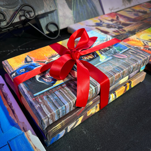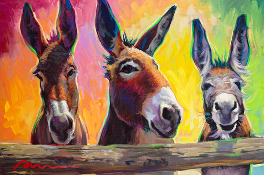 For a Limited Time Only we are offering a custom holiday bundle of Miguel Camarena's Famous Donkey Collection Miniatures (8" x 12") Giclees on Canvas.